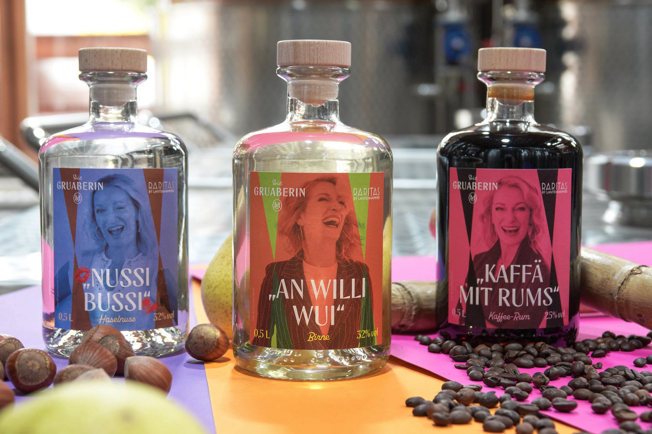 Wenn eine der bissigsten Stimmen Bayerns und eine der renommiertesten Destillerien des Landes gemeinsame Sache machen, darf man sich auf etwas Besonderes gefasst machen: Unter dem Namen „DIE GRUABERIN“ bringen Monika Gruber und die LANTENHAMMER Destillerie eine limitierte RARITAS-Serie auf den Markt – drei Edeldestillate, die Haltung, Heimat und Humor in einem Stamperl vereinen. Frech. Ehrlich. Boarisch. Guad.